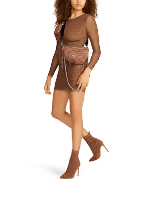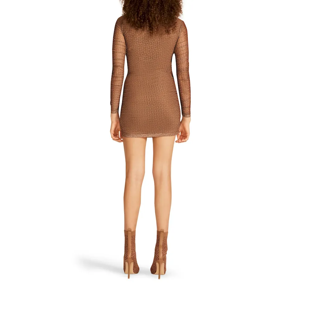 Mesh with their hearts, babe. This logo-printed dress comes in an espresso hue with our signature logo print. Long sleeves and a bodycon silhouette make this a dream for brunch with a cozy cardi or a night out with some stiletto heels.100% PolyesterHand wash cold separatelyDo not bleachLay flat to dryDo not ironDo not dry cleanImported