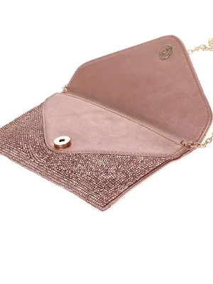 Tiny rhinestones blanket BSWAGGER’s face, transforming this otherwise simple envelope bag into a sparkling statement style. Rock this flashy new favorite as a crossbody, or tuck its delicate chain strap inside and carry as a clutch.Clutch5″H x 9″W x 0.25″D49″ Strap23″ Drop strapMan-made materialsGunmetal hardwearImported