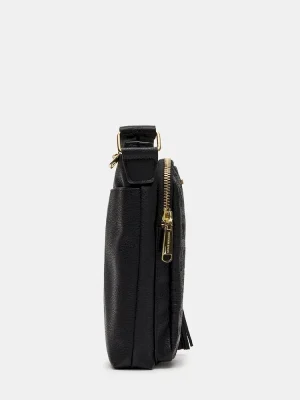COOL + CASUAL + SLEEKOrganization is easy with the LOGO CROSSBODY. A slim square profile hides lots of convenient compartments in this clever bag design.Low profile crossbody bagZip closure at cop1 exterior zip pocket, 1 exterior slip pocket, 1 interior zip pocket, 2 interior slip pocketsDebossed logo print on frontDetachable adjustable webbing strap with logo textDetachable tasselStrap drop: 24 inches9.5in H x 9in W x 1.5in DSynthetic materialsImported