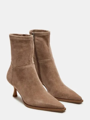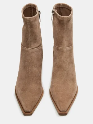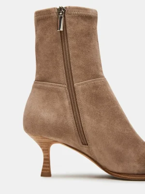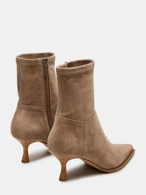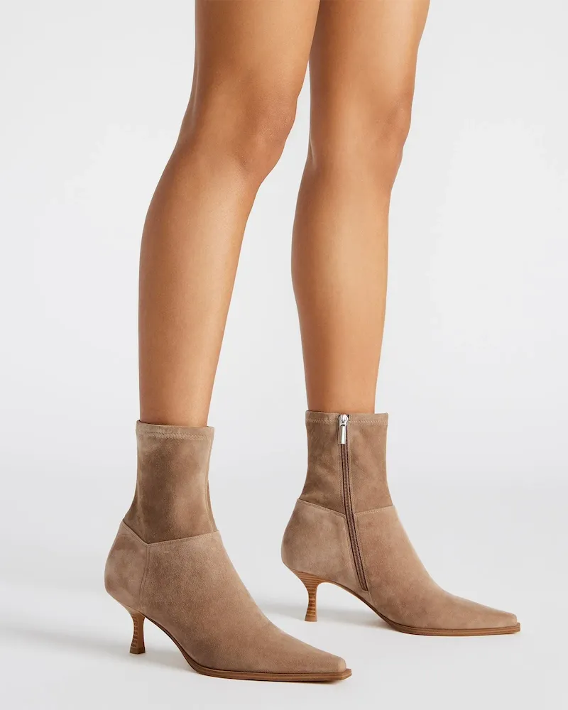 Complete your outfit with the STASIA ankle bootie. This versatile bootie features a trendy kitten heel and pointed toe, providing style and comfort. This shoe is the perfect addition to your wardrobe for any occasion. Elevate any look with these must-have booties.2.5 inch heel height9 inch shaft circumference6.5 inch shaft heightSuede upper materialTextile liningSynthetic sockSynthetic soleImported