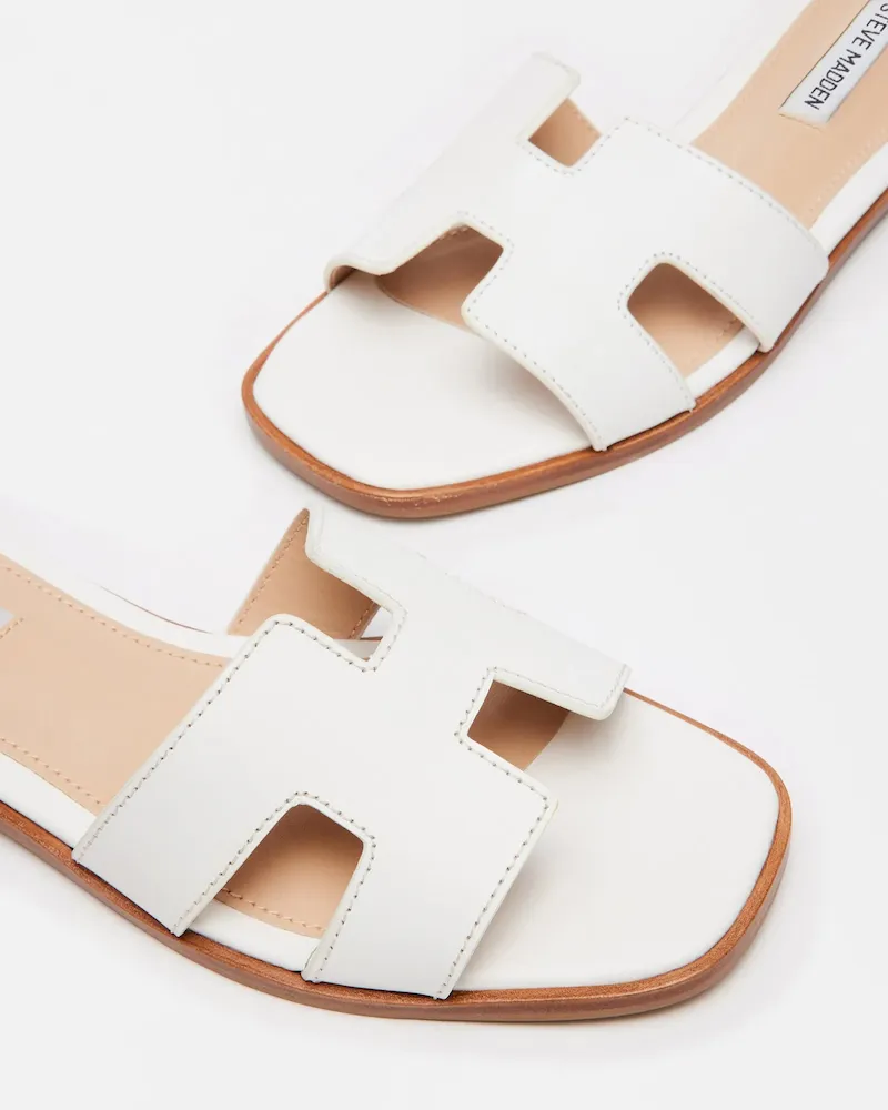 SMART + MODERN + EASYGeometric cutouts on the wide single strap of the HADYN slide give this flat sandal design a fresh feel.Slip-on styleCutout details on strap.75 inch heel heightLeather, vegan leather, or textile upper materialSynthetic liningSynthetic sockSynthetic soleImported