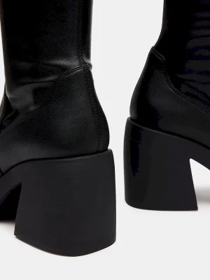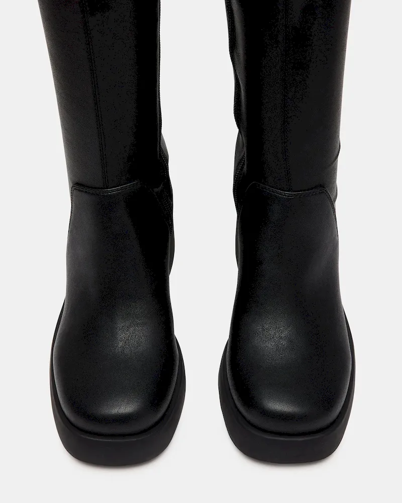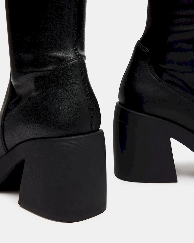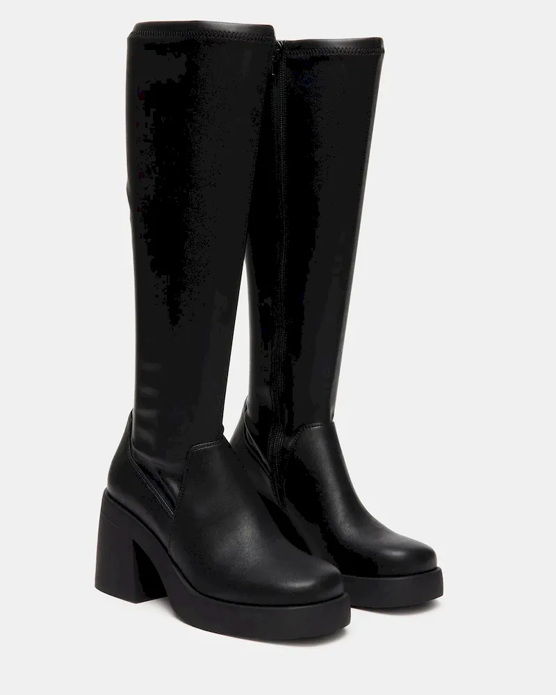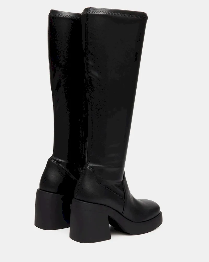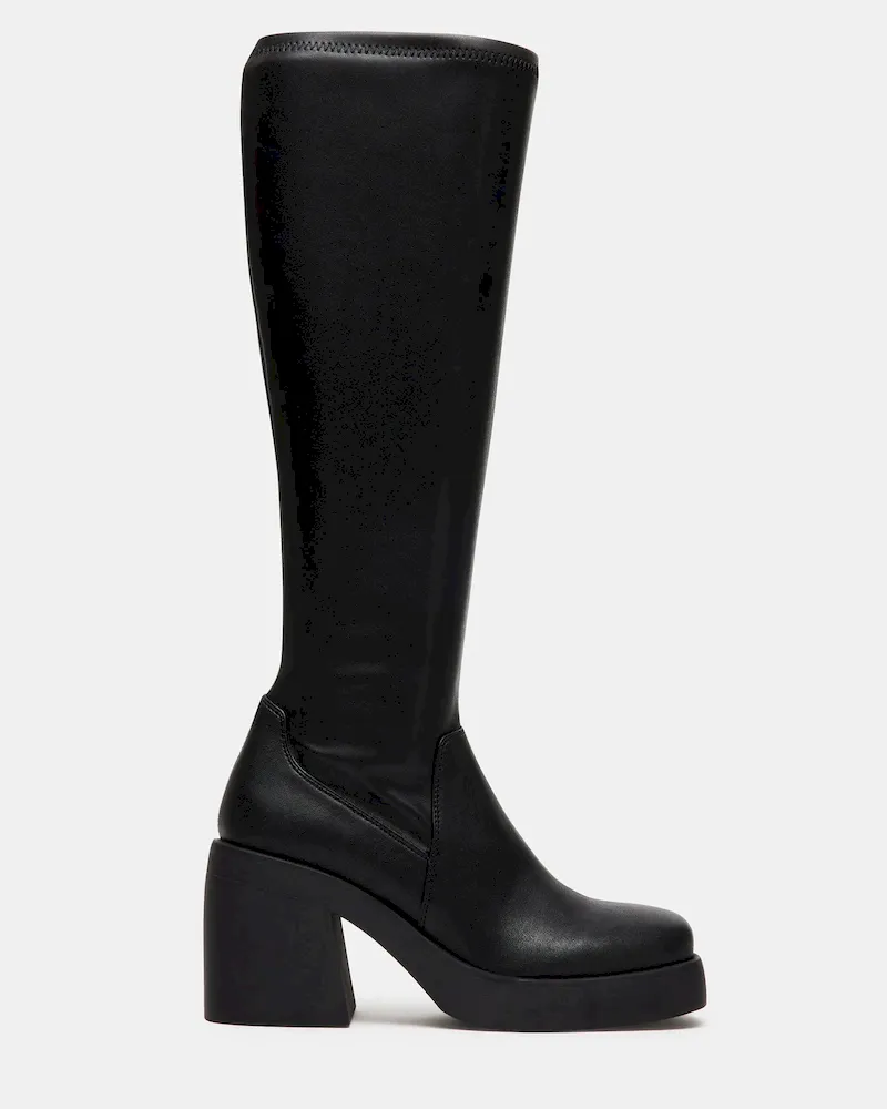 POWERFUL + ESSENTIAL + CONTEMPORARYThe BERKLEIGH square toe knee boot gives you a sleek and defined silhouette with a stretch fabric construction and platform sole with a block heel.Square toe platform block heel knee bootSide zipper closureStretch fabricExtended shaft circumference for wider fit3.25 inch heel height 1 inch platformSize 6 measurements: 13.5 inch top-shaft circumference, 13.1 inch mid-shaft circumference, 15.25 inch shaft heightSize 8 measurements: 13.9 inch top-shaft circumference, 13.5 inch mid-shaft circumference, 16 inch shaft height Size 10 measurements: 14.2 inch top-shaft circumference, 13.9 inch mid-shaft circumference, 16.5 inch shaft heightVegan leather upper material Textile liningVegan leather sock Synthetic sole Imported