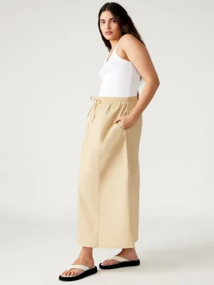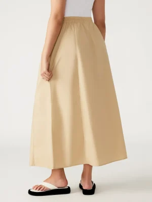 The SUNNY skirt features a comfortable elastic waistband, front tie, and convenient side pockets. This maxi length A-line skirt is perfect for both casual outings and dressier occasions.