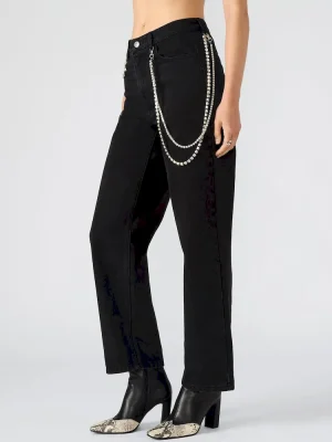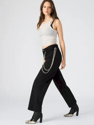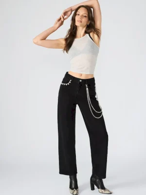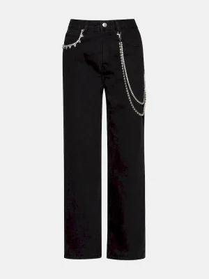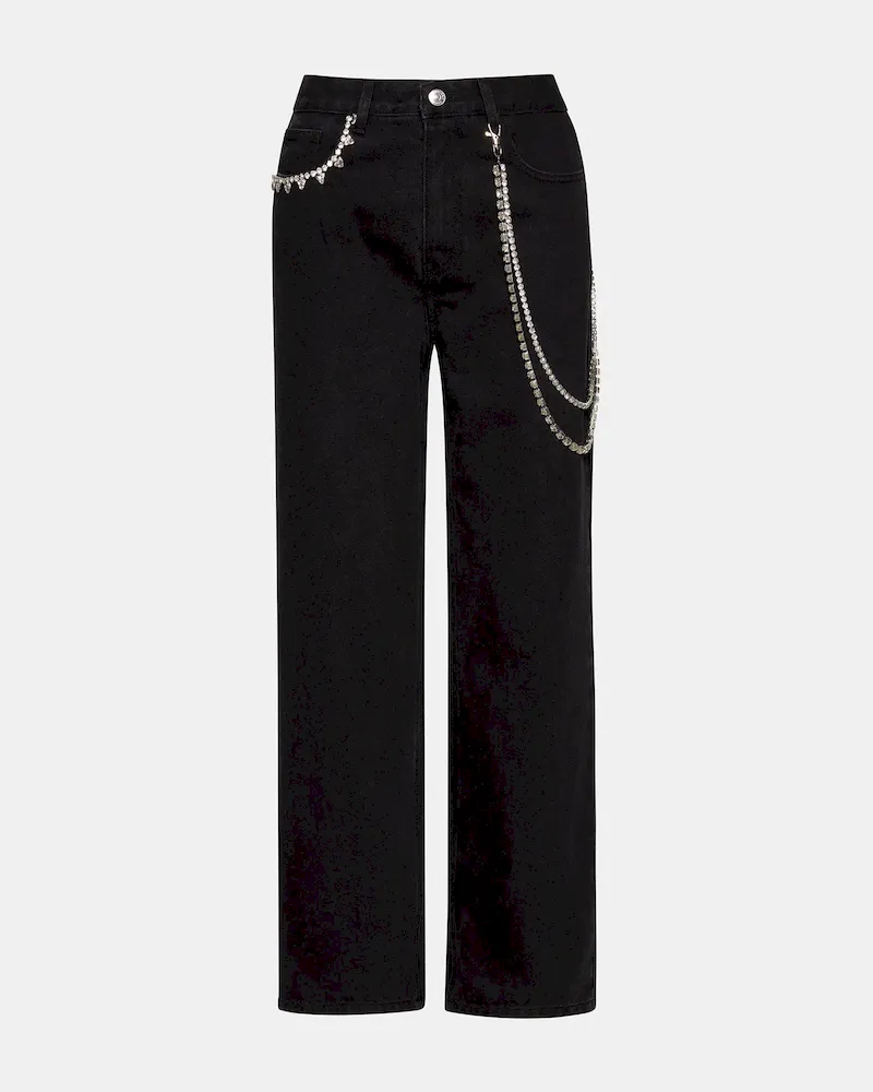 These SWIFT wide-leg denim jeans combine style and practicality with functional front and back pockets for convenient storage. The attachable chain adds a versatile, edgy detail, allowing you to customize your look. Crafted for comfort and a relaxed fit, this jean is an expert choice for a modern, fashion-forward wardrobe.