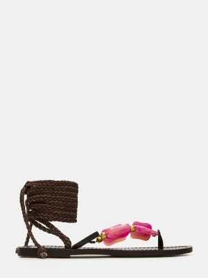 Elevate your summer style with the TASHA sandal. This strappy flat sandal features a trendy lace-up design that adds a touch of elegance to any outfit. Expertly crafted for comfort and style, these sandals are a must-have for any fashion-forward wardrobe. Order now and step out in style all season long.