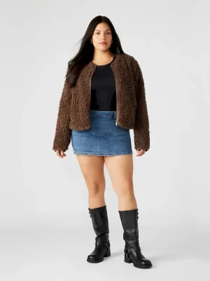 The TEDDY is a sherpa jacket with a front zipper closure and collarless design. Stay warm and fashionable during the colder months with this stylish and practical jacket. Made with high-quality materials for ultimate comfort.