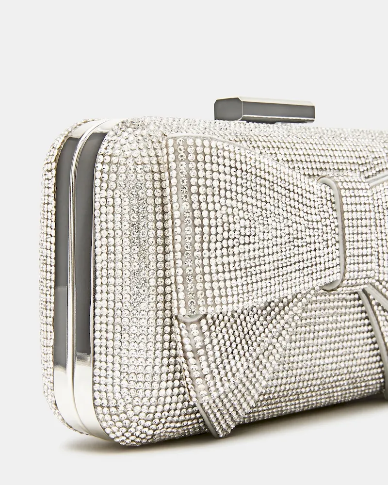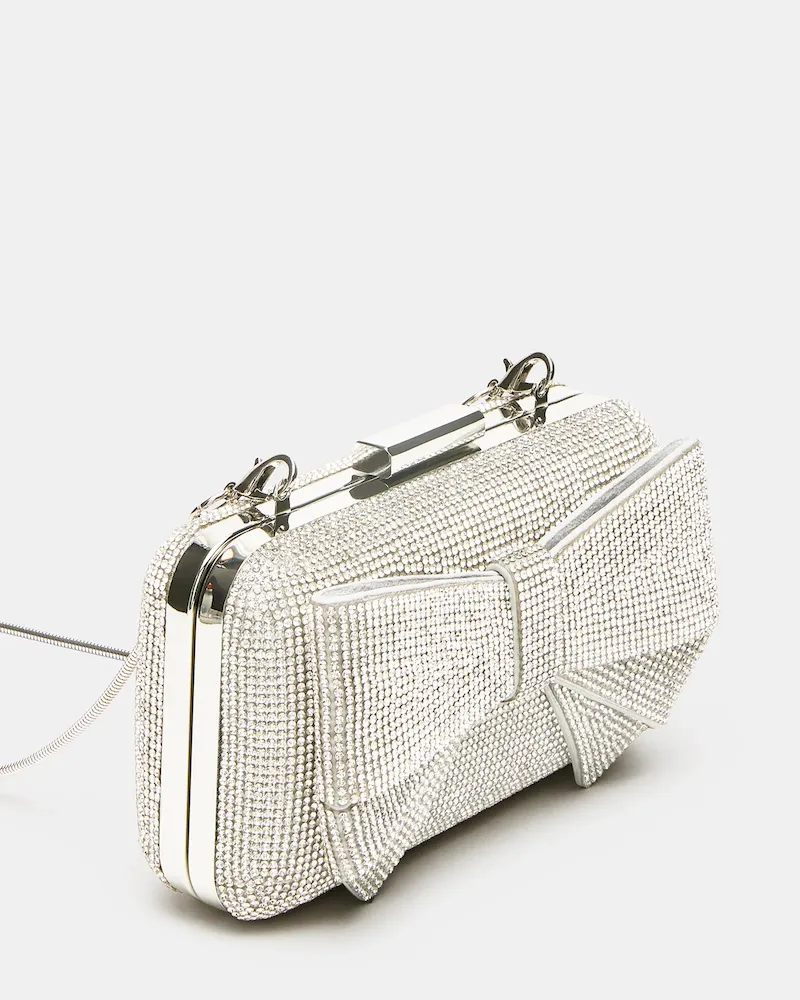 This THAIS bag is a sparkling and stylish addition to any outfit. Featuring a magnetic clutch closure, a chain crossbody strap, and a cute bow detail, it offers both functionality and fashion. Adorned in sparkly rhinestones, it adds a touch of glam to your look. Perfect for any occasion.