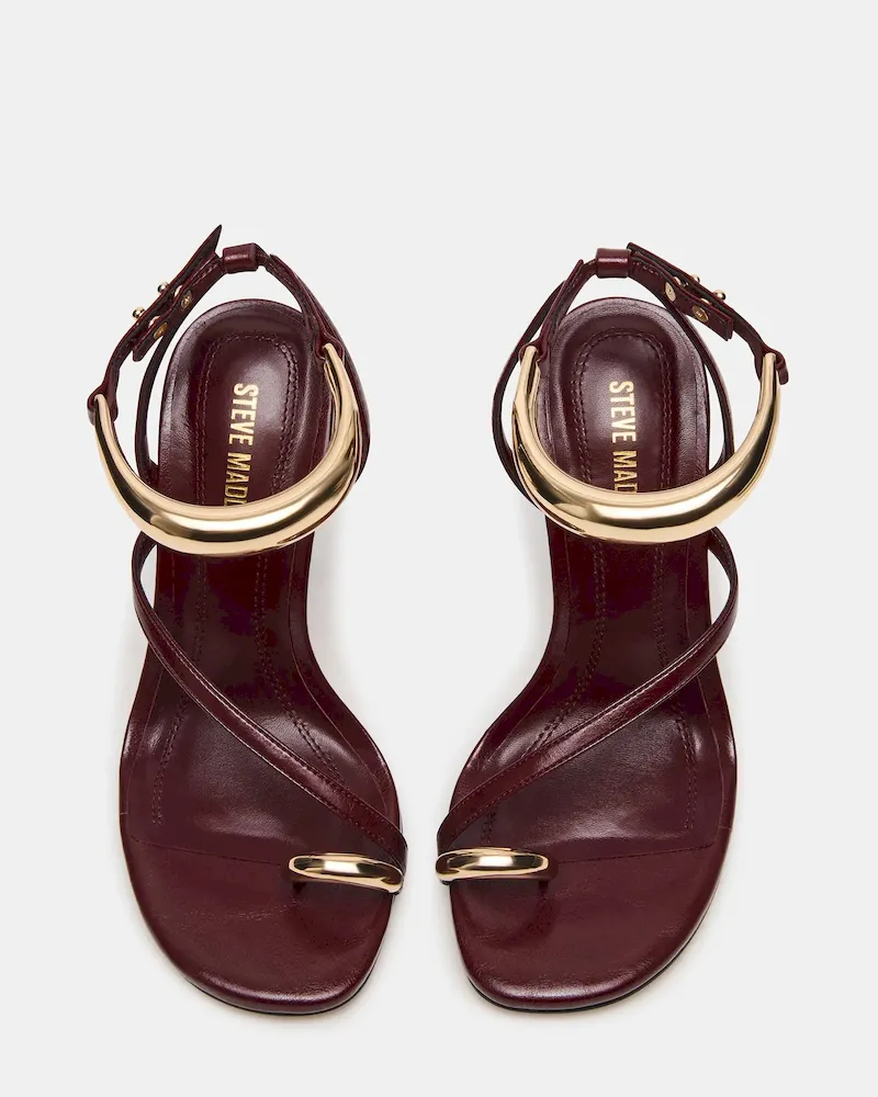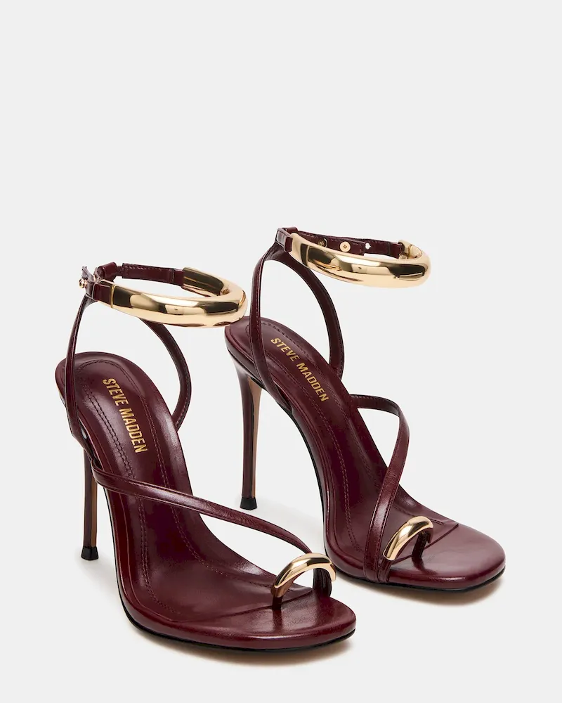 Step into style with the TIA stiletto heel. With daring gold hardware accents and a strappy design, this shoe will elevate any outfit. Unleash your boldness and conquer the day in these statement heels!