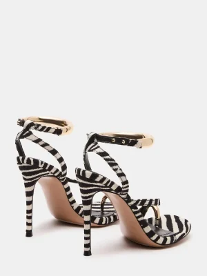 Step into style with the TIA stiletto heel. With daring gold hardware accents and a strappy design, this shoe will elevate any outfit. Unleash your boldness and conquer the day in these statement heels!