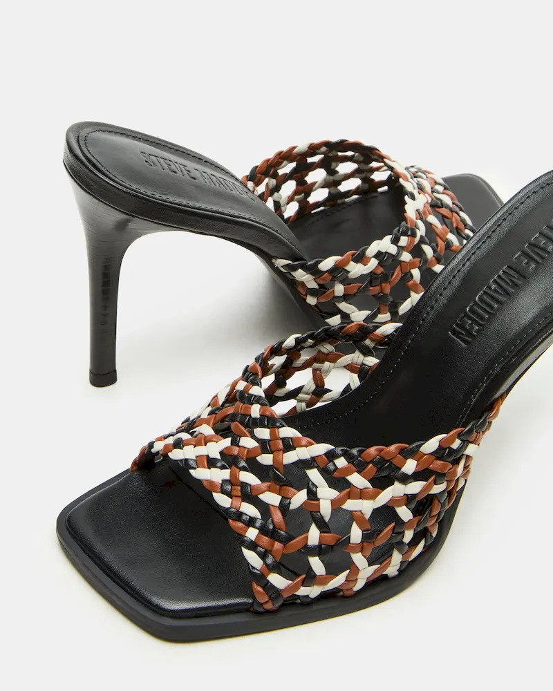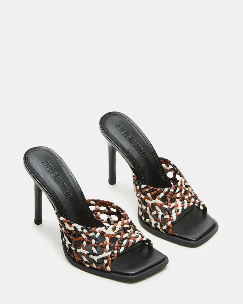 With a sleek square-toe design and a stiletto heel, the TIKKI mule heels are perfect for a stylish and sophisticated look. Elevate your outfit with this elegant and on-trend shoe.