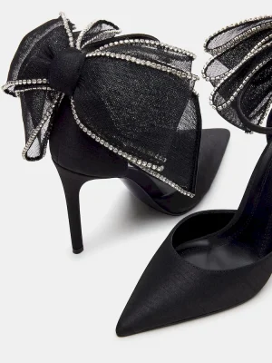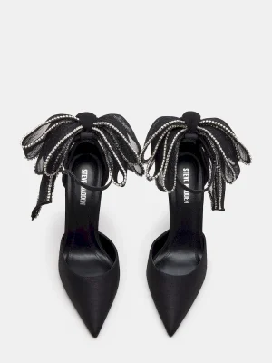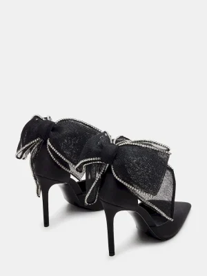 Indulge in luxury with our TIMELESS heel. Its bow tulle detail, rhinestone trimming, and pointed toe add a touch of elegance. Designed as a pump with a satin heel, this shoe exudes sophistication and style. Walk down the aisle in elegance and comfort.