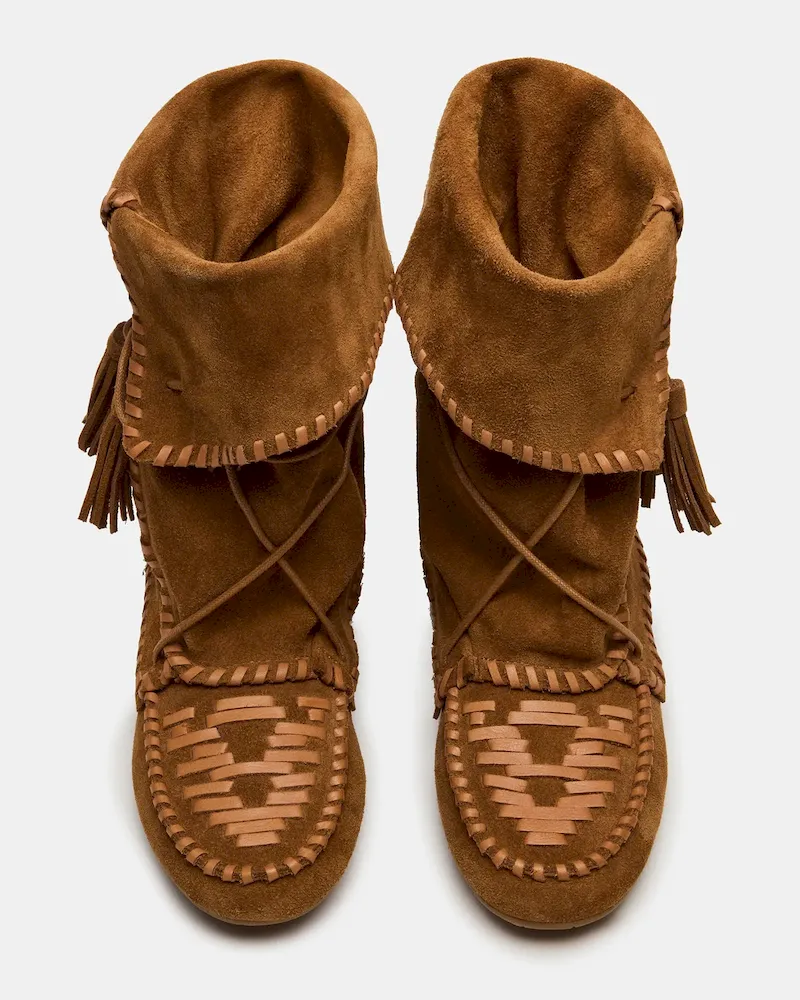The TIPPETT is a stylish and versatile fold-over boot. With its lace-up closure, braided edges, woven pattern, and rounded toe, it provides a secure and comfortable fit. The added touch of tassels adds a fashionable element to this must-have shoe. Perfect for any occasion, this boot is the perfect combination of fashion and function.