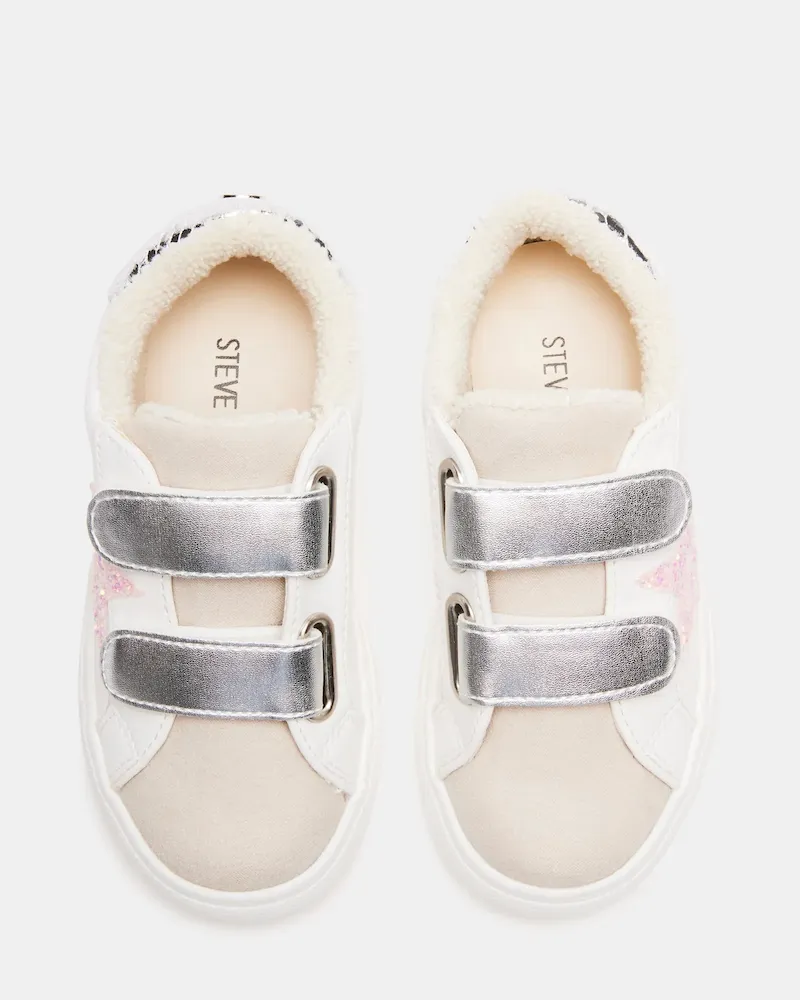 Introducing toddlers’ REZUME WHITE MULTI, the perfect shoes for your little ones! These lowtops feature velcro for easy on and off and a star design that will make them the star of the playground.
