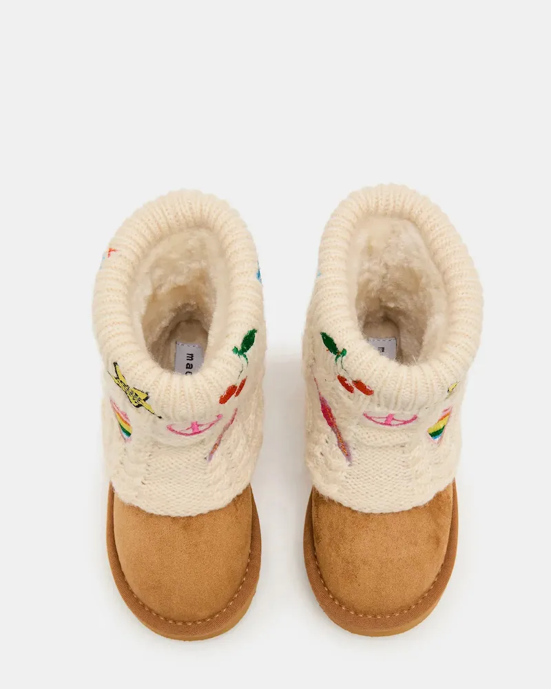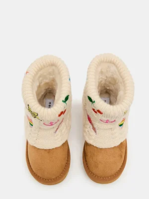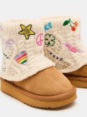 This toddlers’ fold-over cuffed knit ankle boot combines style and comfort in a versatile bootie design. Featuring a comfy knit cuff that folds over the ankle, it provides a snug fit and added warmth. The multi-tone color palette offers a fashionable touch, making it easy to pair with various outfits. Durable and flexible, this boot is designed to support active kids while keeping their feet comfortable all day.