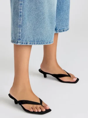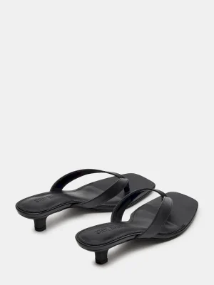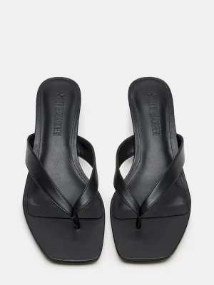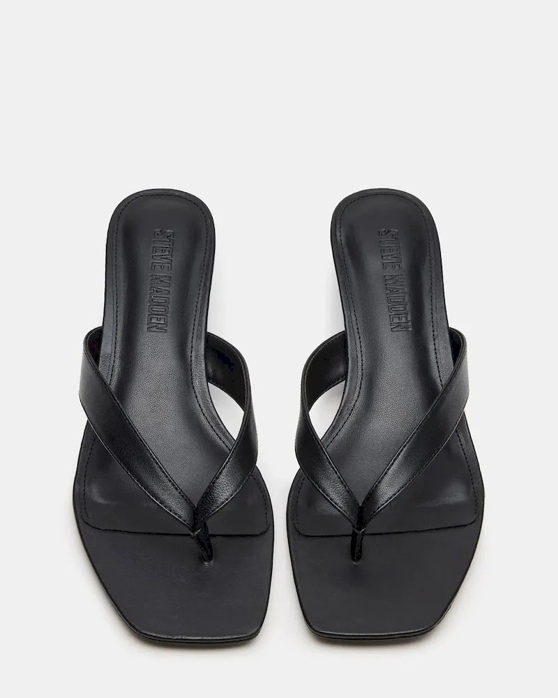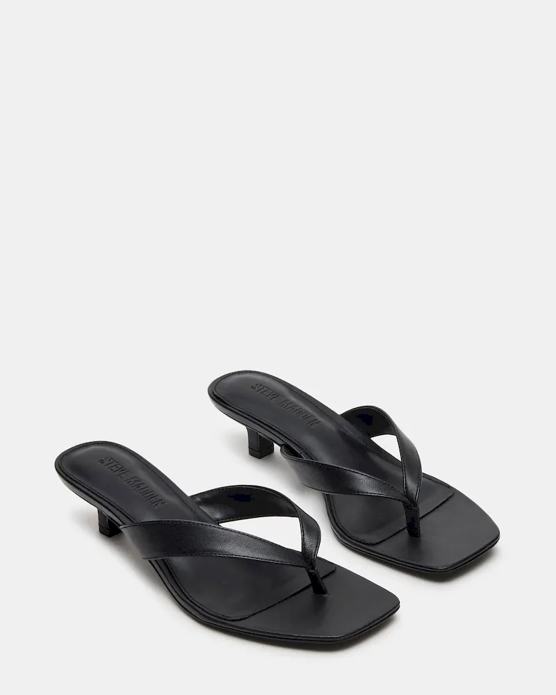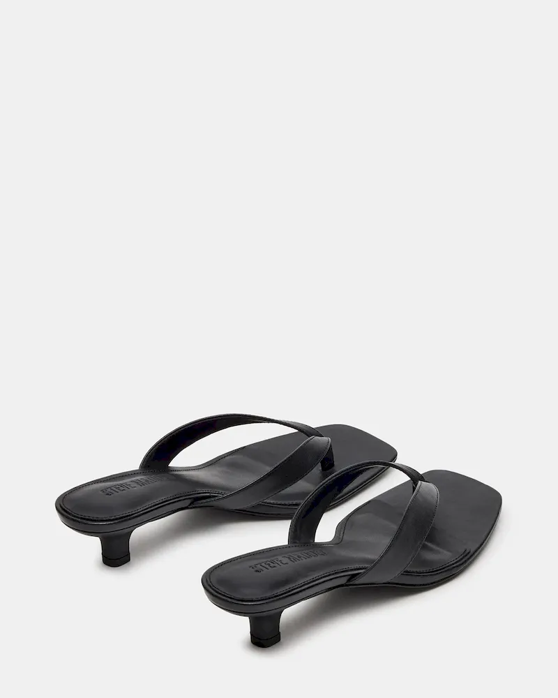 The TRACIE BLACK LEATHER is a sleek and stylish choice for any formal occasion. This heel features a comfortable kitten heel, a chic thong strap design, and a classic square toe. With a touch of exotic texture, these shoes add a unique element to your outfit while providing comfort and sophistication.