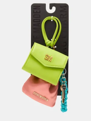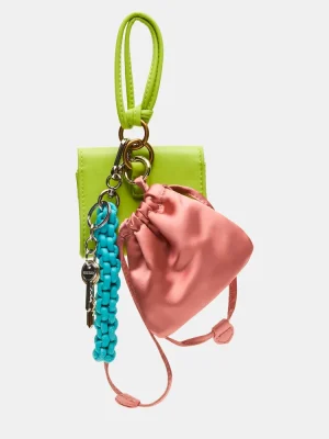 The TRAVEL BAG CHARM is the perfect accessory for keeping your important items secure and easily accessible. With a convenient attachable bag charm, pin snap closure, and drawstring closure. Keep your essentials close with the soft satin pouch bag charm and summer camp-inspired lanyard. It also includes a card wallet bag charm for added organization.