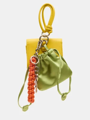 The TRAVEL BAG CHARM is the perfect accessory for keeping your important items secure and easily accessible. With a convenient attachable bag charm, pin snap closure, and drawstring closure. Keep your essentials close with the soft satin pouch bag charm and summer camp-inspired lanyard. It also includes a card wallet bag charm for added organization.