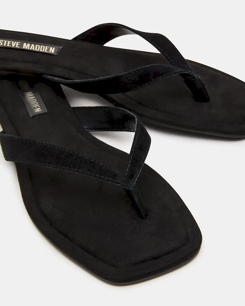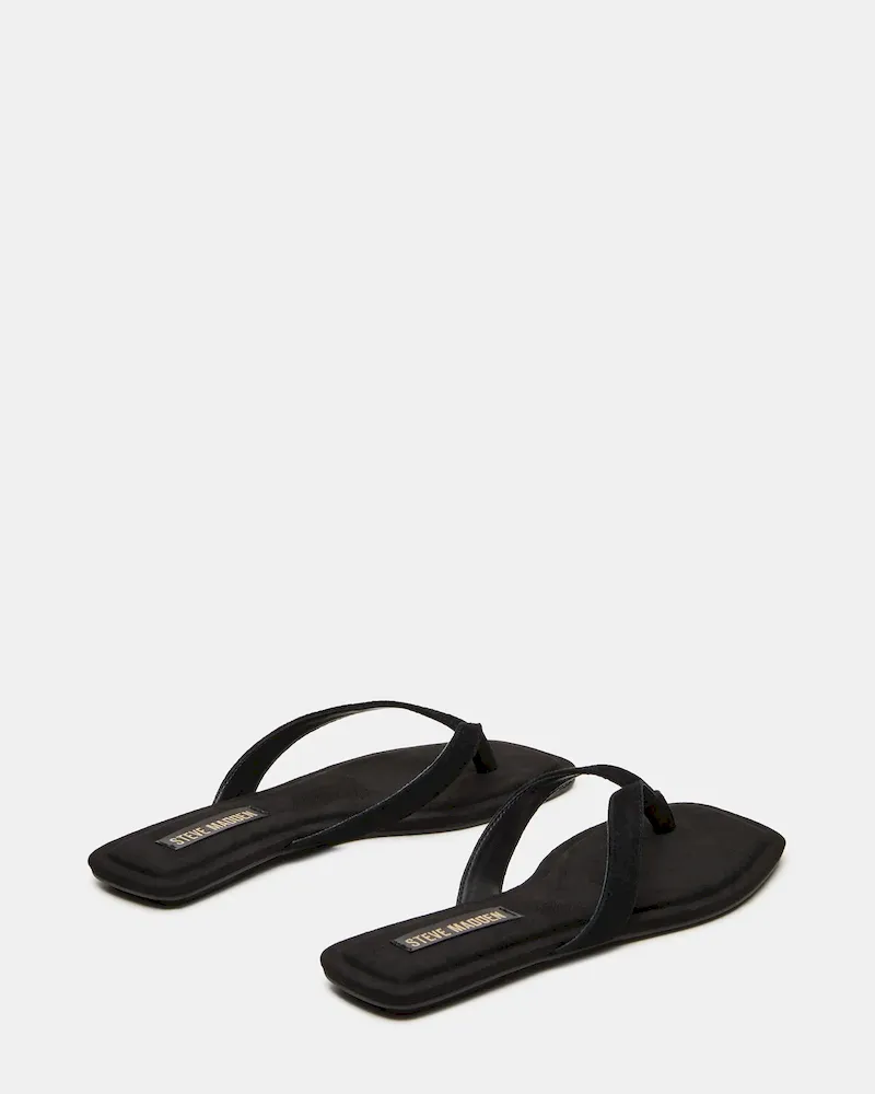 The TRELLA sandal features a modern square-toe design combined with a minimalist thong strap, offering both style and comfort. Crafted from quality materials, it provides a refined look suitable for various occasions. Its sleek silhouette enhances foot shape while ensuring a secure fit, making it an expert choice for those seeking understated elegance in warm-weather footwear.