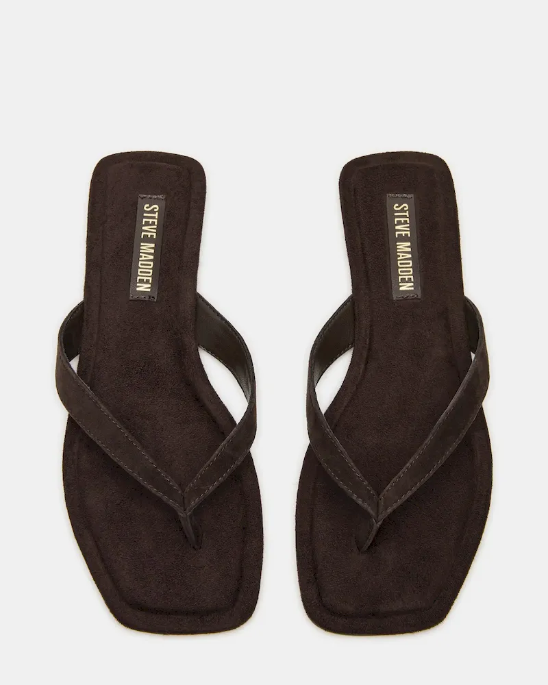 The TRELLA sandal features a modern square-toe design combined with a minimalist thong strap, offering both style and comfort. Crafted from quality materials, it provides a refined look suitable for various occasions. Its sleek silhouette enhances foot shape while ensuring a secure fit, making it an expert choice for those seeking understated elegance in warm-weather footwear.