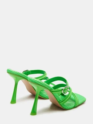SHARP + CONTEMPORARY + ARTSYA stiletto heel set at a dramatic angle gives the TRIN square toe sandal an architectural look with subtle cord details adding texture to this monochrome look.