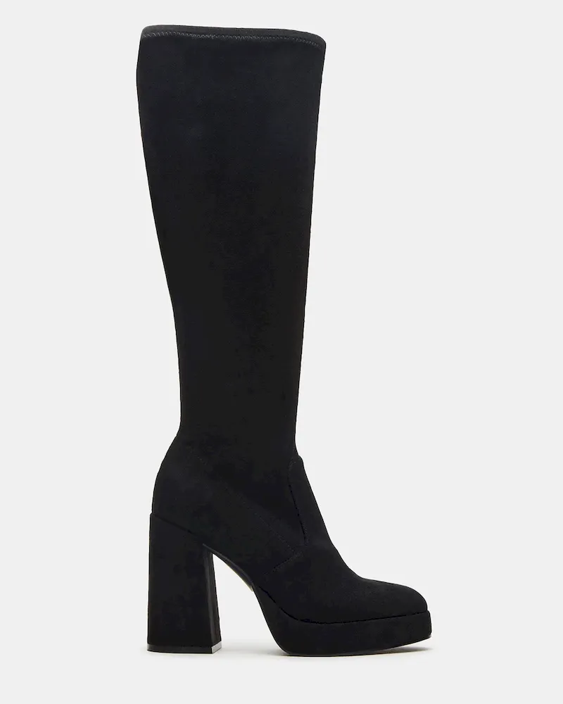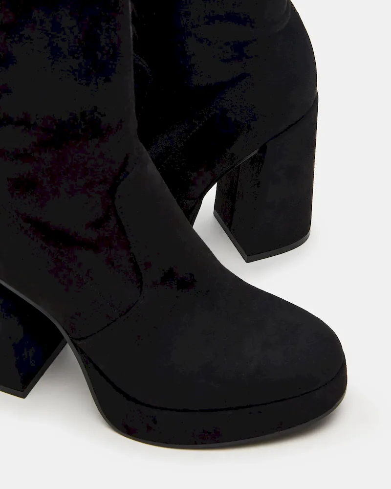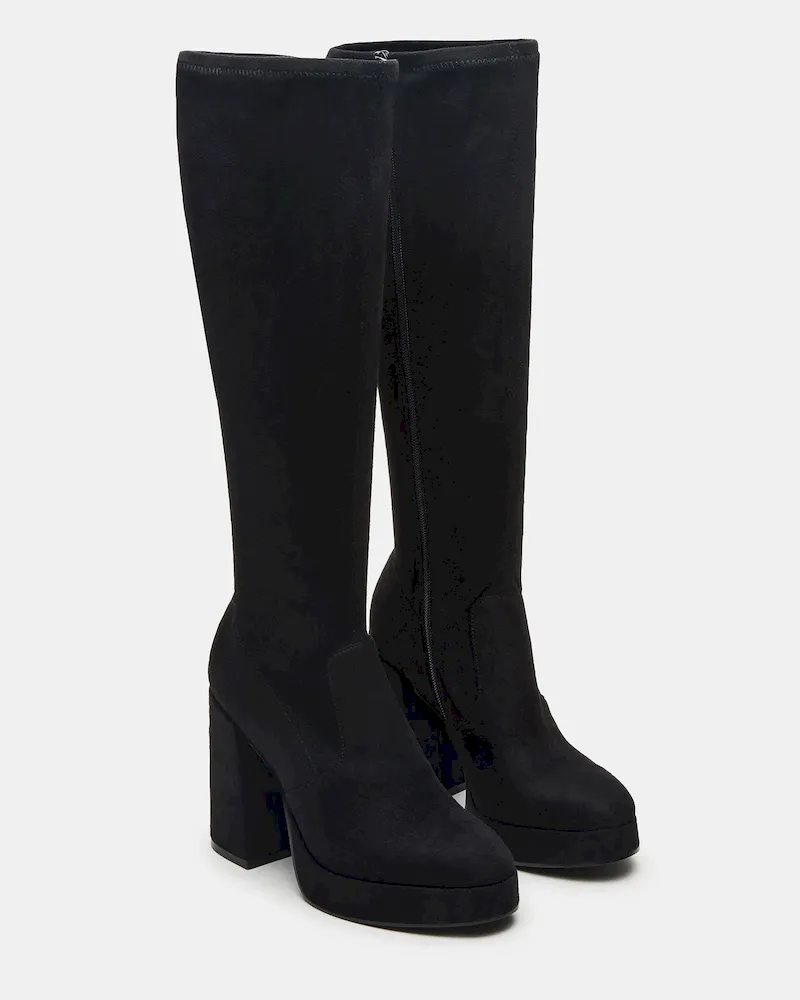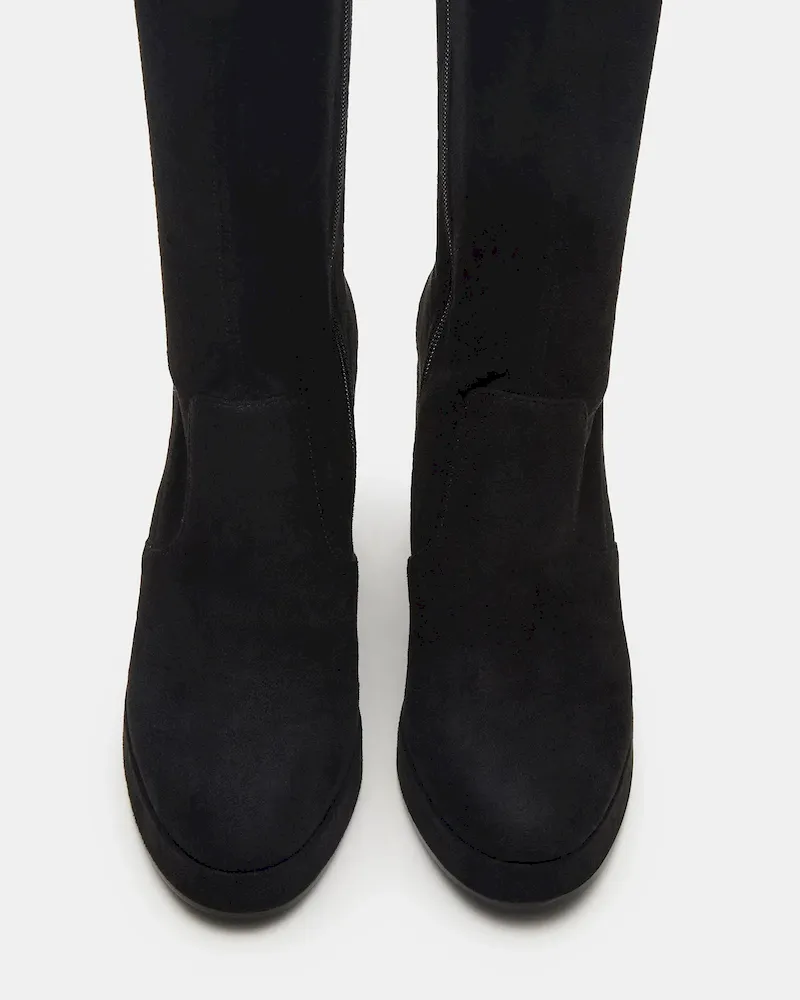 Step into sophistication with TWAIN BLACK WIDE CALF, a versatile knee-high boot featuring a stable block heel for all-day comfort. The convenient inside zipper ensures effortless wear, while the rounded toe provides a classic silhouette that complements any outfit. Expertly crafted for both style and function, these boots transition seamlessly from office to evening.
