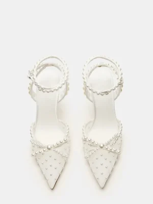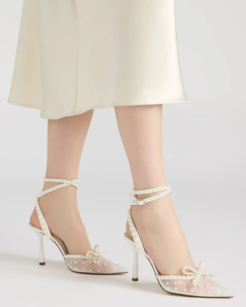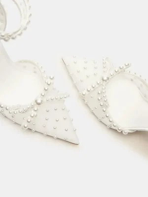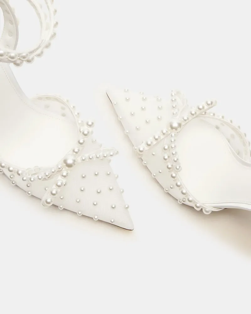 Elevate your look with the VAL heels. The pointed-toe design adds a touch of sophistication, while the mesh detailing and pearl embellishments add a touch of elegance. Perfect for any occasion, these heels will make a statement and elevate any outfit.
