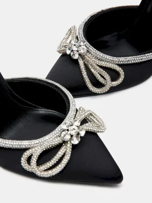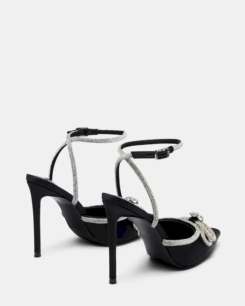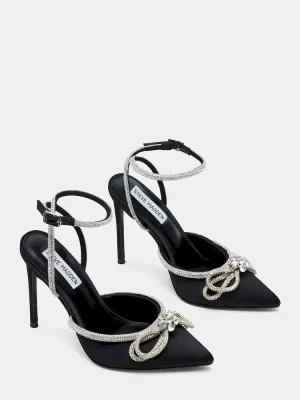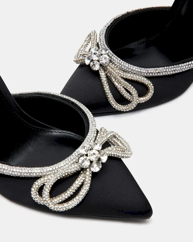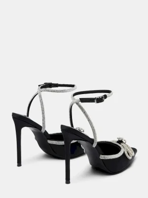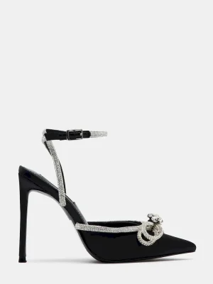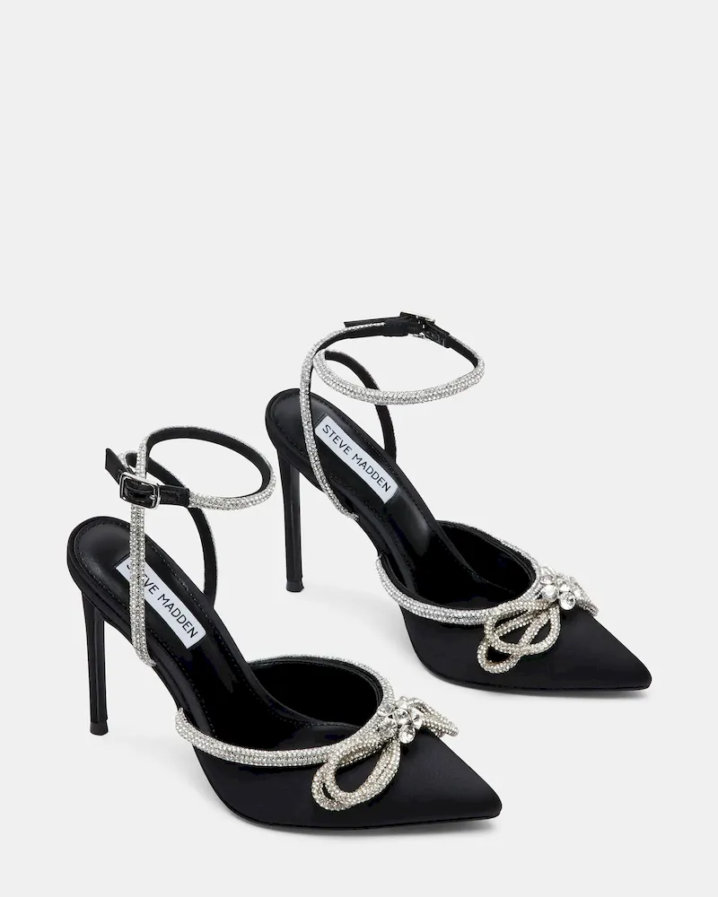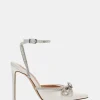 You’ll be the bell of the ball in VIABLE, the dress heel you’ll wear for years to come. Set atop a slender stiletto heel, this pointed-toe pair features a slim embellished ankle strap and bow design.