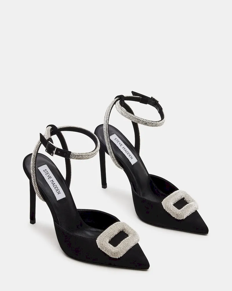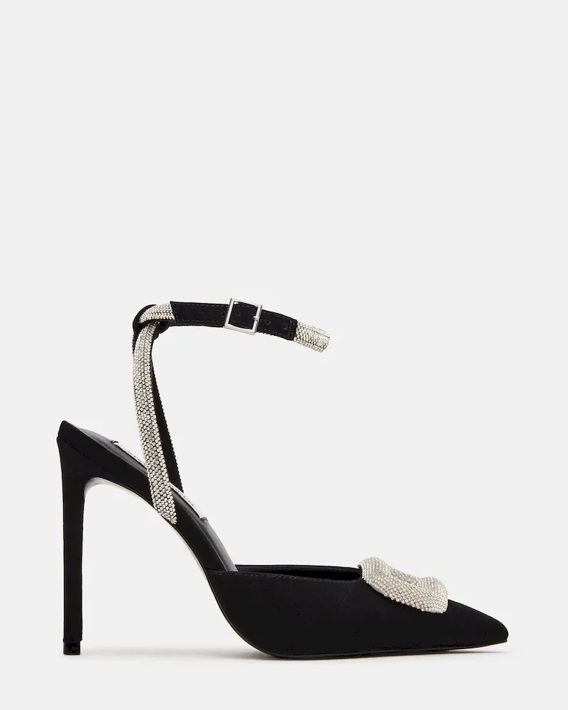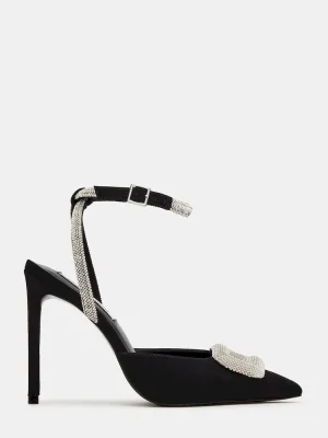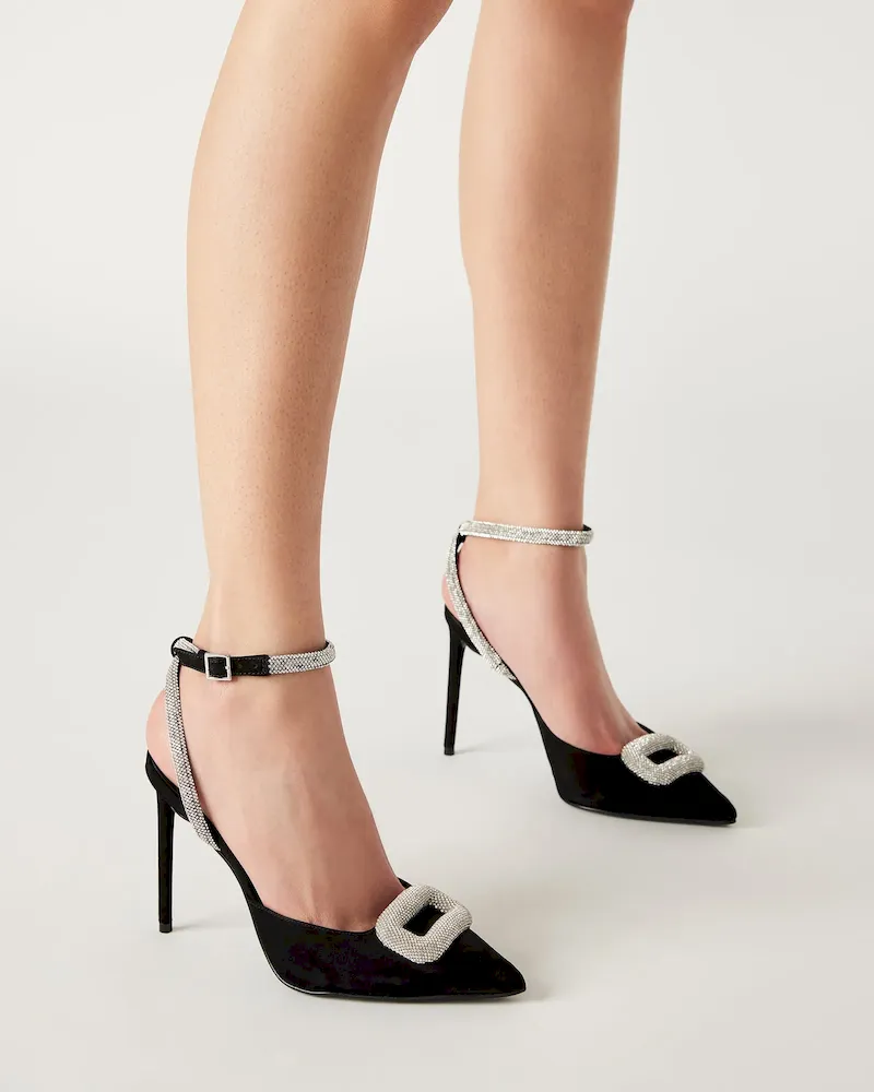 Step out in style with VIENNA. These stunning heels features a sleek stiletto heel and pointed toe that adds a touch of sophistication. The embellished ankle strap and rhinestone ornament detail provide the perfect finishing touch for any glamorous look. Elevate any outfit with these statement shoes.