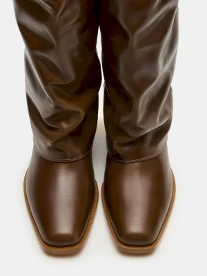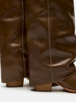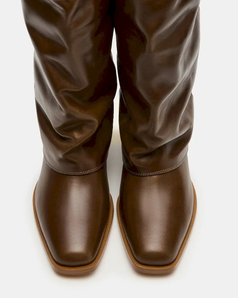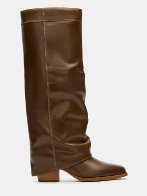 Elevate your footwear collection with the WINNICK OLIVE LEATHER boot, featuring a sophisticated cuffed fold-over design that reaches the knee for a statement look. Crafted with a modern square-toe and supported by a sturdy block heel, this boot combines style with stability, making it ideal for all-day wear. The construction offers durability and a sleek finish, perfect for pairing with both casual and tailored outfits.