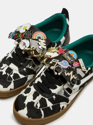 - Leather and synthetic upper material with charms